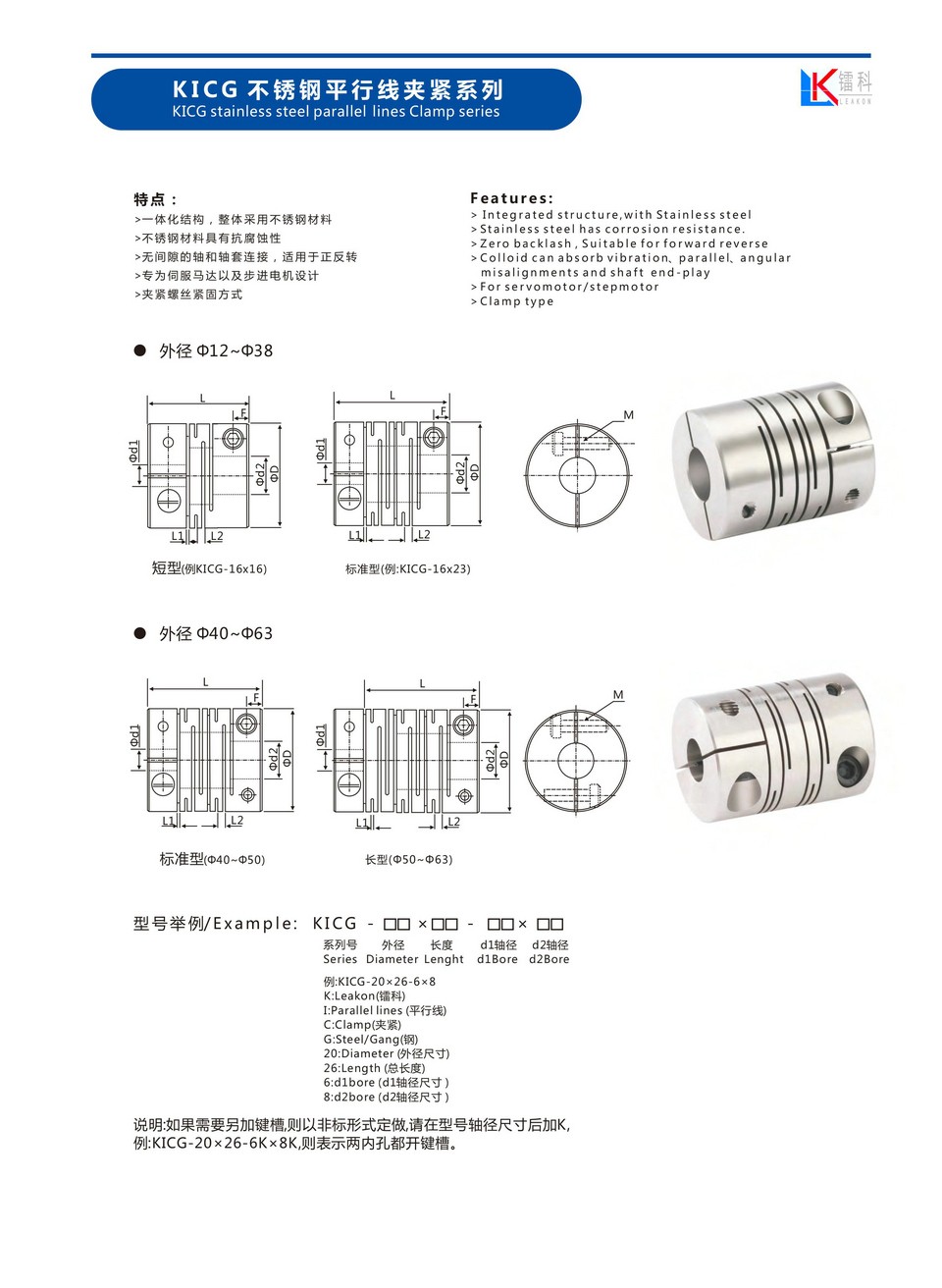首页 >> 产品中心 >>绕线联轴器 >>不锈钢平行线夹紧/顶丝系列 >> KICG不锈钢平行线夹紧系列