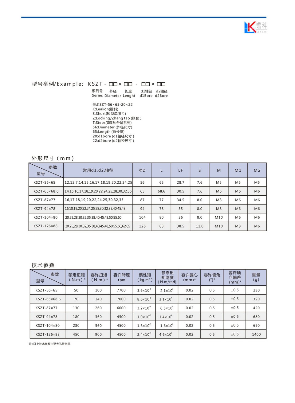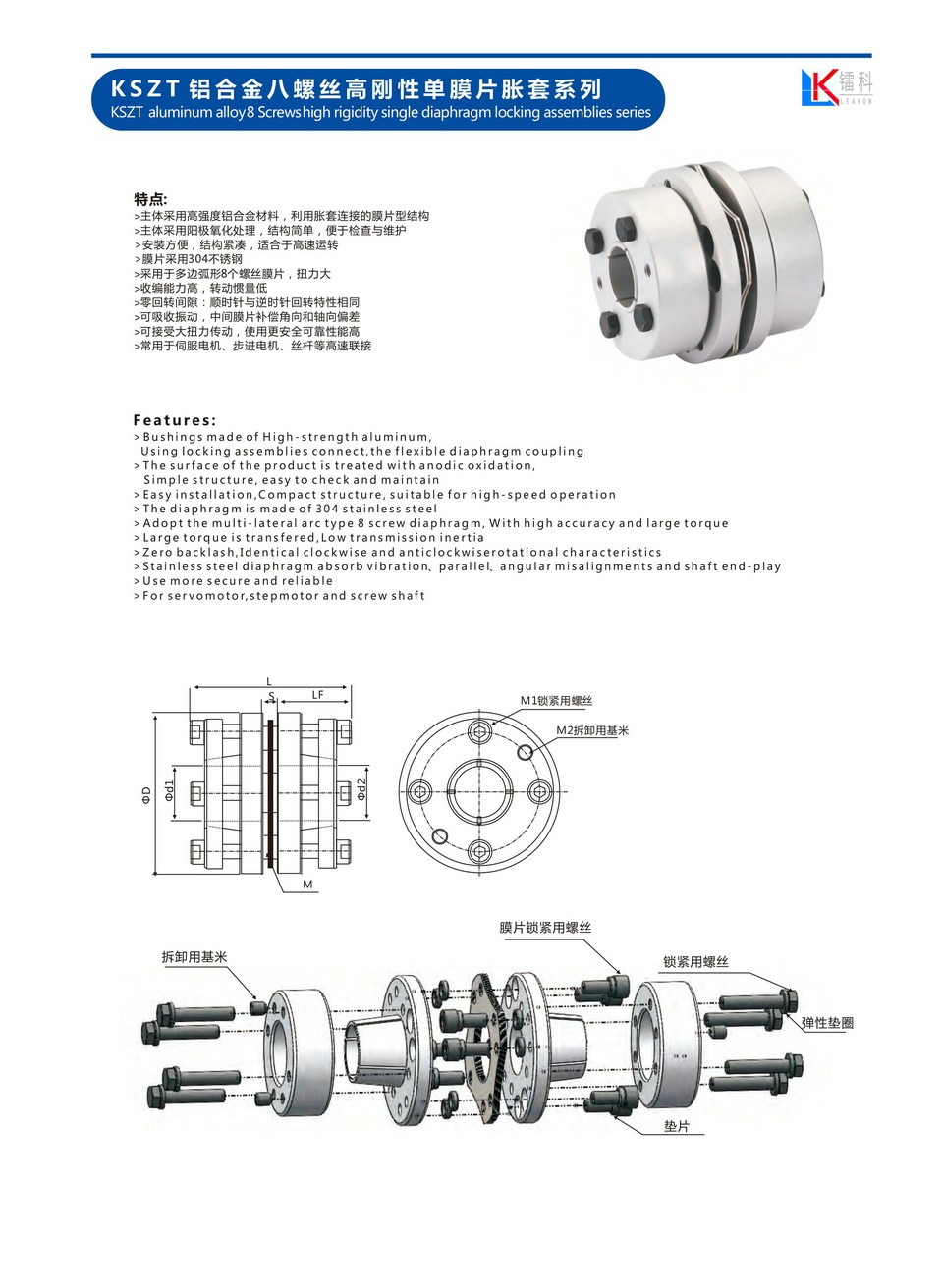 KSZT 铝合金八螺丝高刚性单膜片胀套系列