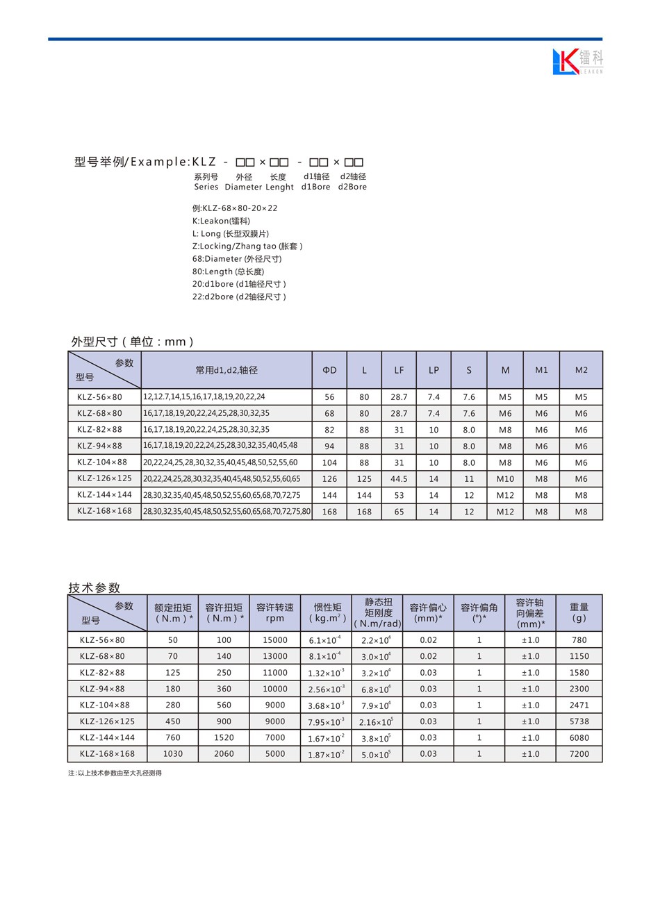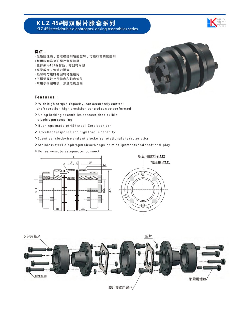 首页 >> 产品中心 >>胀套联轴器 >>45#钢单/双膜片胀套系列 >> KLZ 45#钢双膜片胀套系列