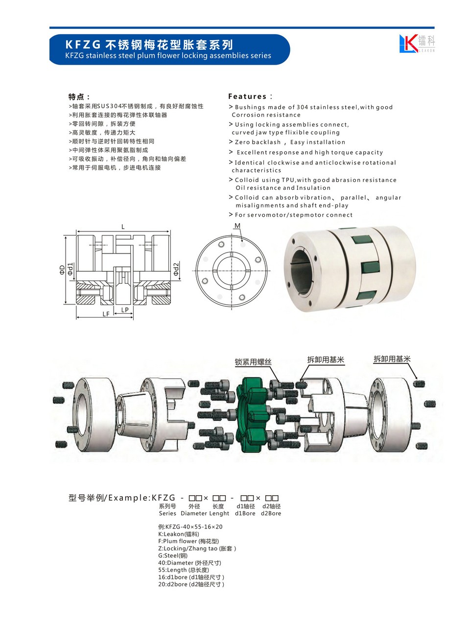 首页 >> 产品中心 >>胀套联轴器 >>不锈钢梅花型胀套系列 >> KFZG不锈钢梅花型胀套系列
