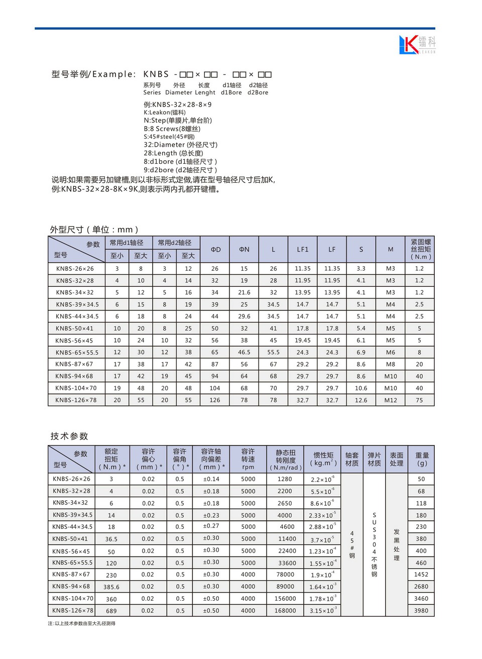KNBS 钢八螺丝高刚性单台阶单膜片键槽系列