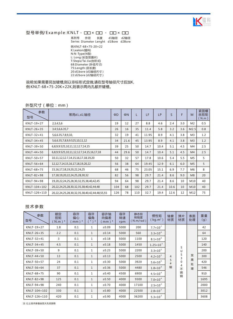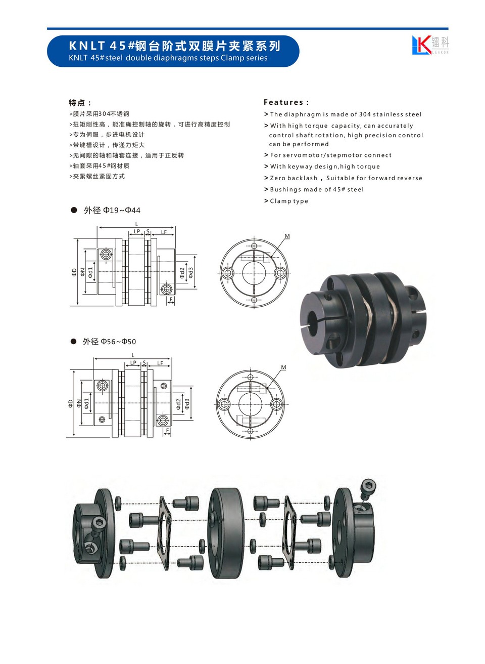 KNLT 45#钢台阶式双膜片夹紧系列