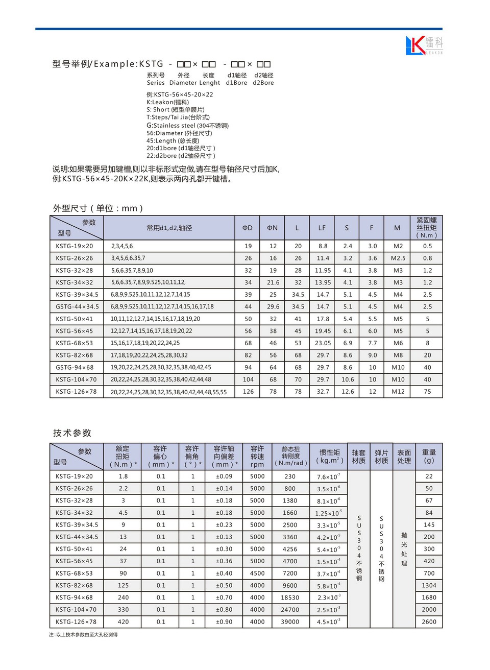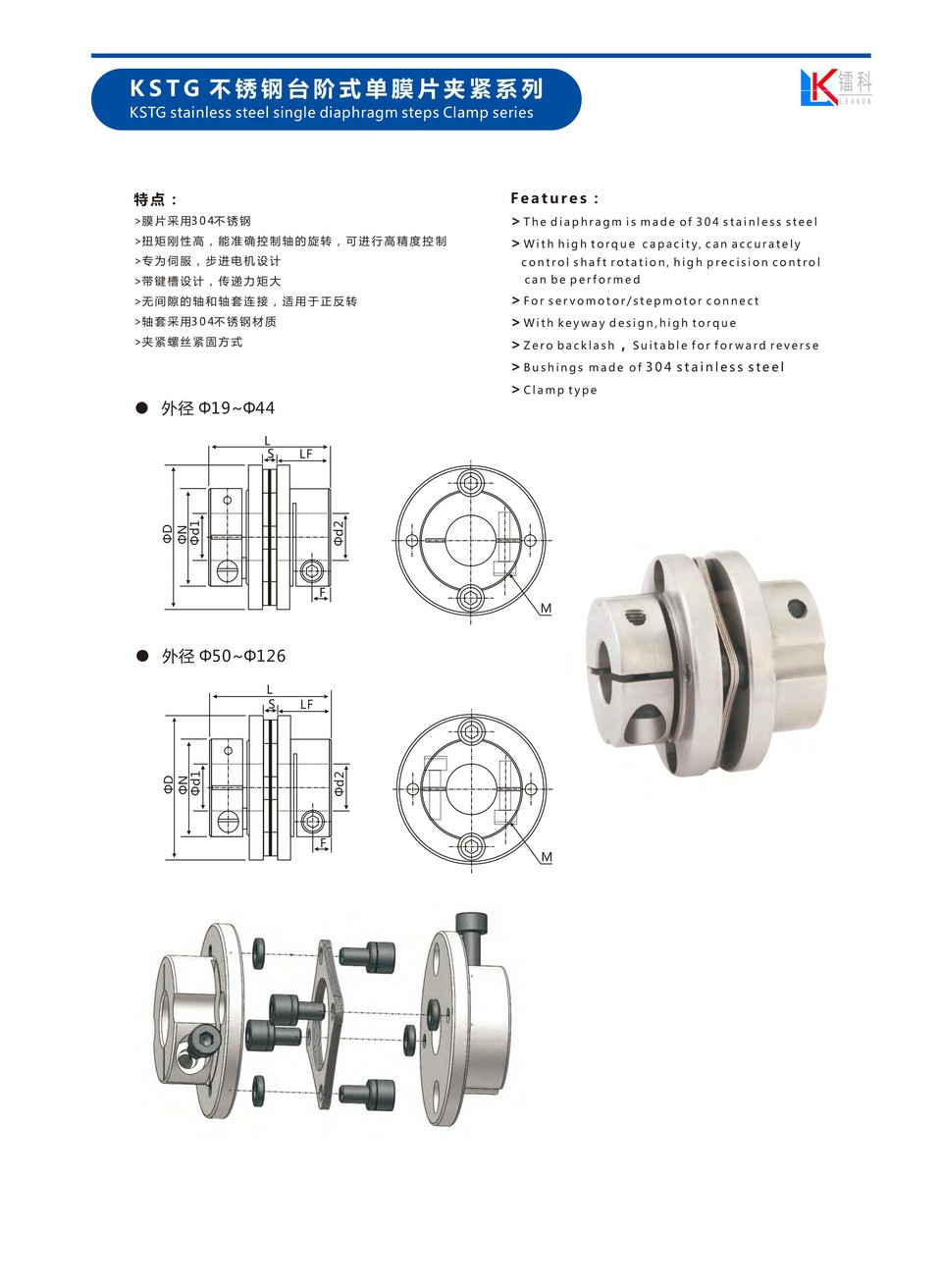 首页 >> 产品中心 >>台阶式膜片联轴器 >>不锈钢台阶式单/双膜片夹紧系列 >> KSTG 不锈钢台阶式单膜片夹紧系列