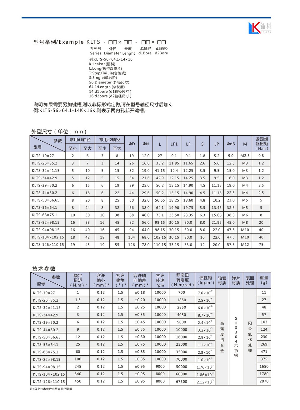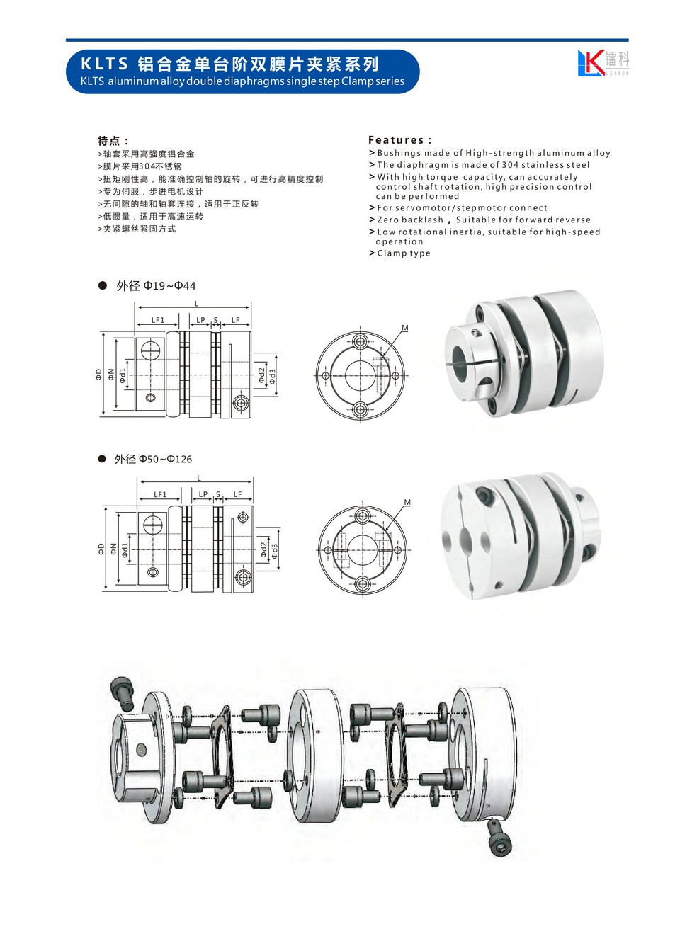 首页 >> 产品中心 >>台阶式膜片联轴器 >>铝合金单台阶单/双膜片夹紧系列 >> KLTS 铝合金单台阶双膜片夹紧系列