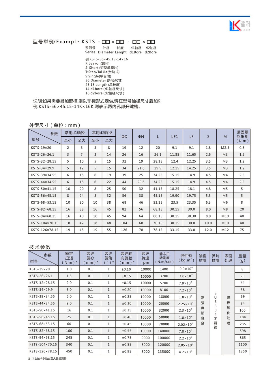 首页 >> 产品中心 >>台阶式膜片联轴器 >>铝合金单台阶单/双膜片夹紧系列 >> KSTS 铝合金单台阶单膜片夹紧系列