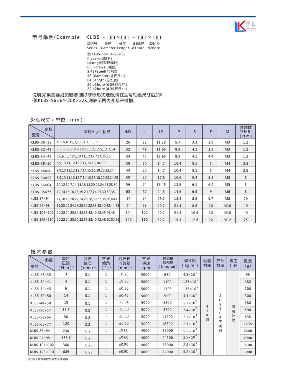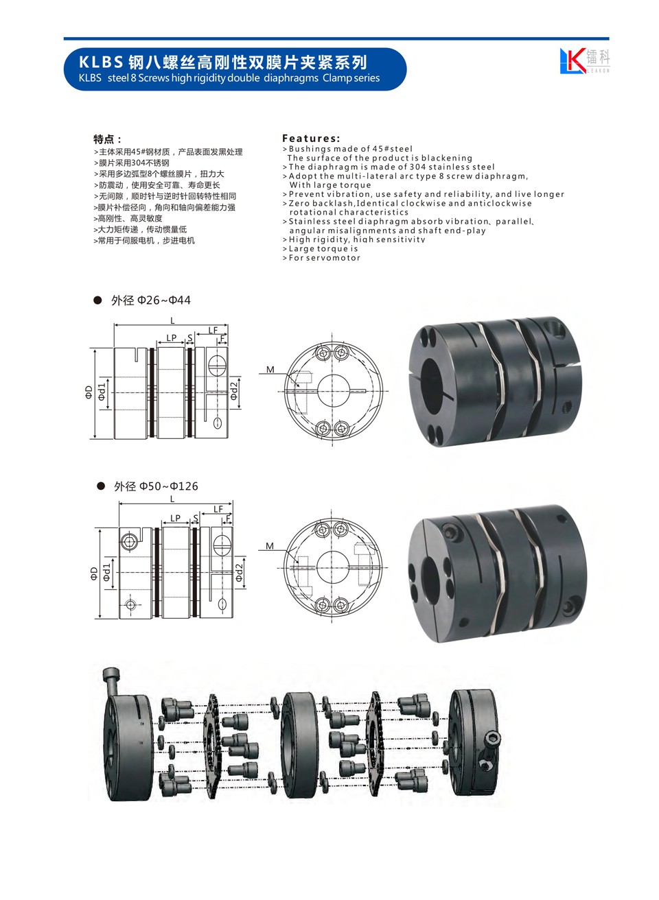 KLBS钢八螺丝高刚性双膜片夹紧系列