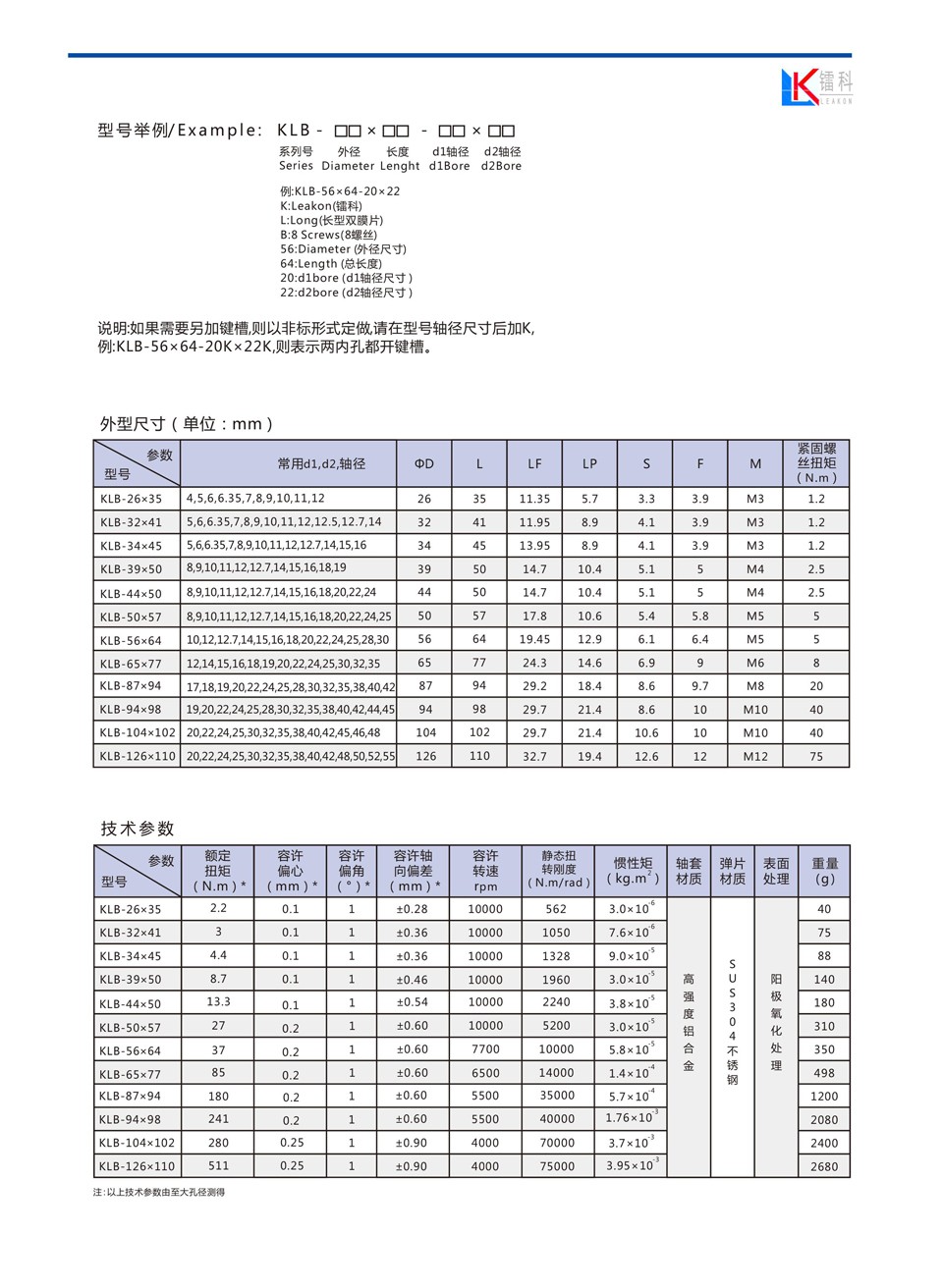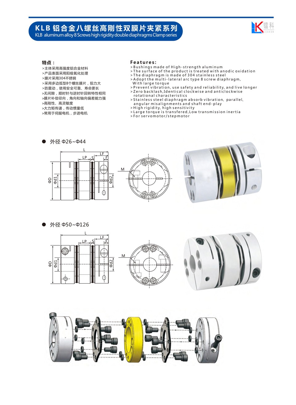 KLB 铝合金八螺丝高刚性双膜片夹紧系列