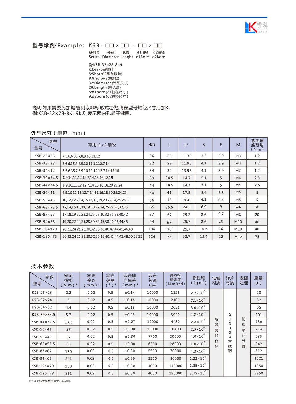 KSB 铝合金八螺丝高刚性单膜片夹紧系列
