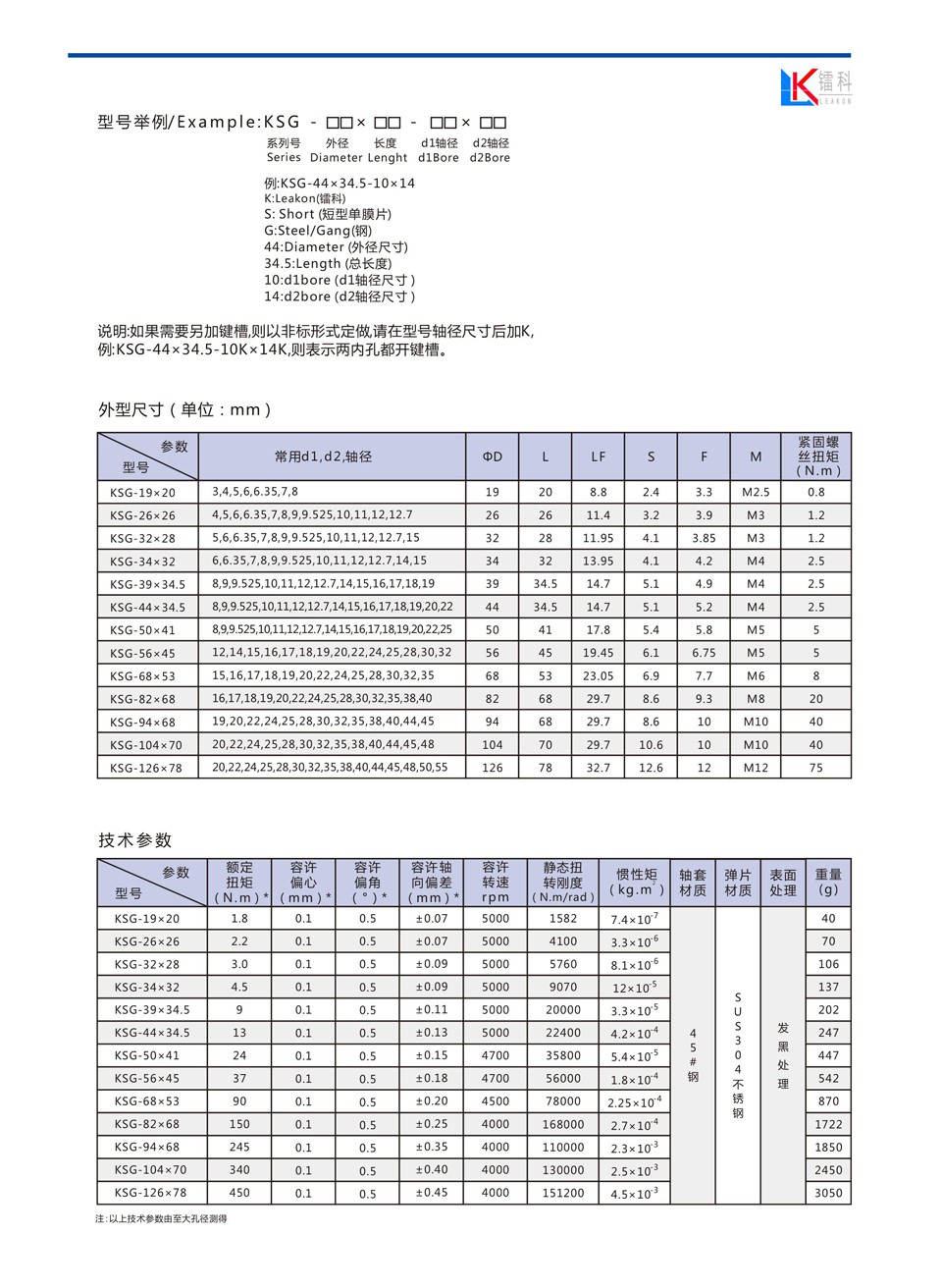 首页 >> 产品中心 >>膜片联轴器 >>45#钢单/双膜片夹紧系列 >> KSG 45#钢单膜片夹紧系列
