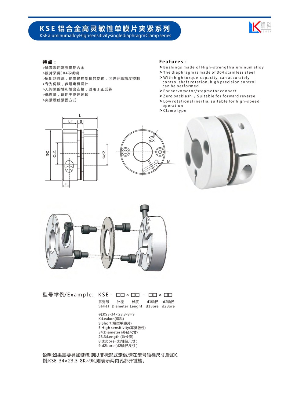 KSE 铝合金高灵敏性单膜片夹紧系列