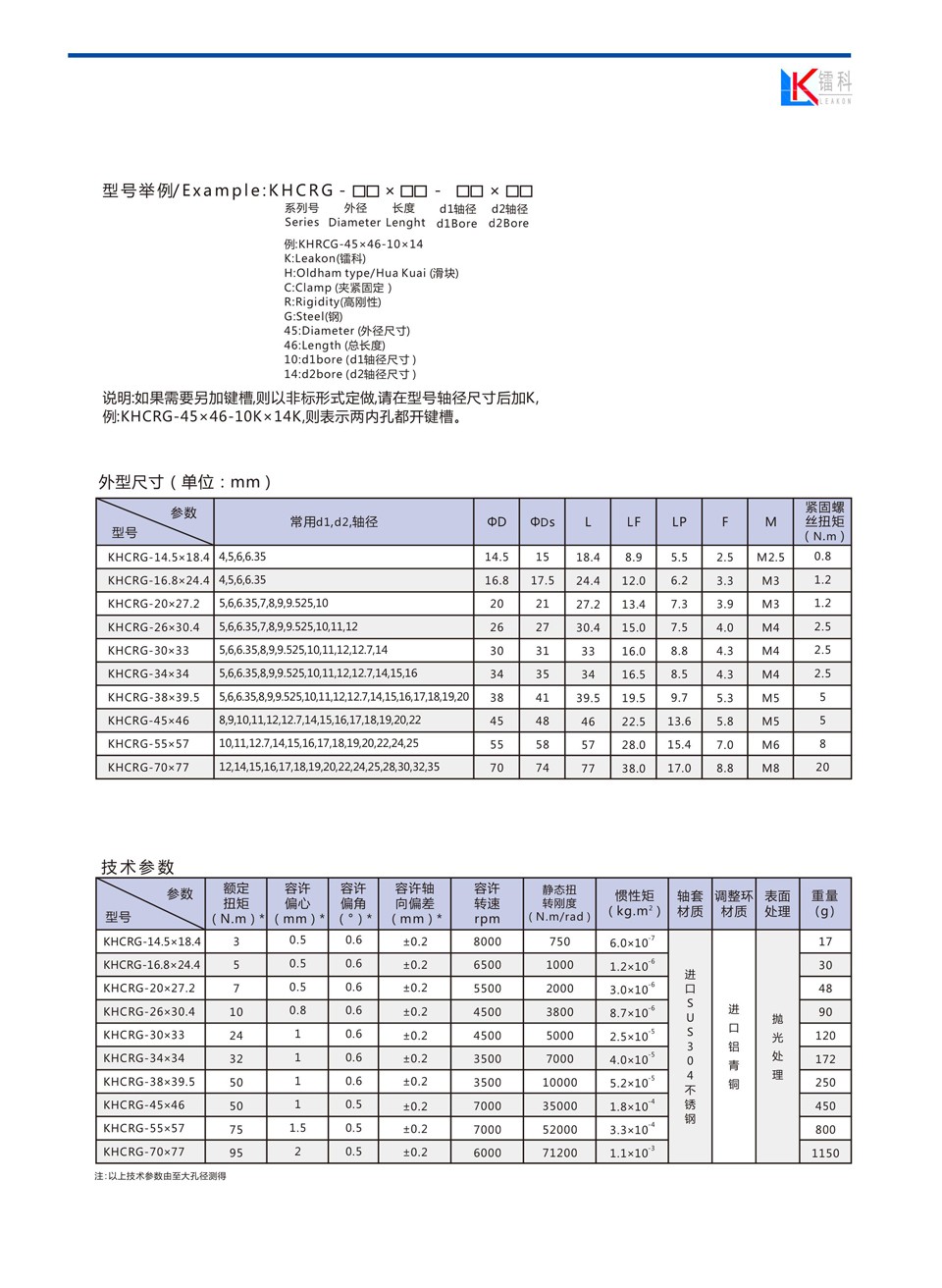 KHCRG不锈钢刚性十字滑块夹紧系列