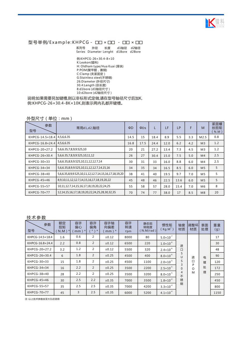 首页 >> 产品中心 >>十字滑块联轴器 >>不锈钢高转矩十字滑块夹紧/顶丝系列 >> KHPCG 不锈钢高转矩十字滑块夹紧系列