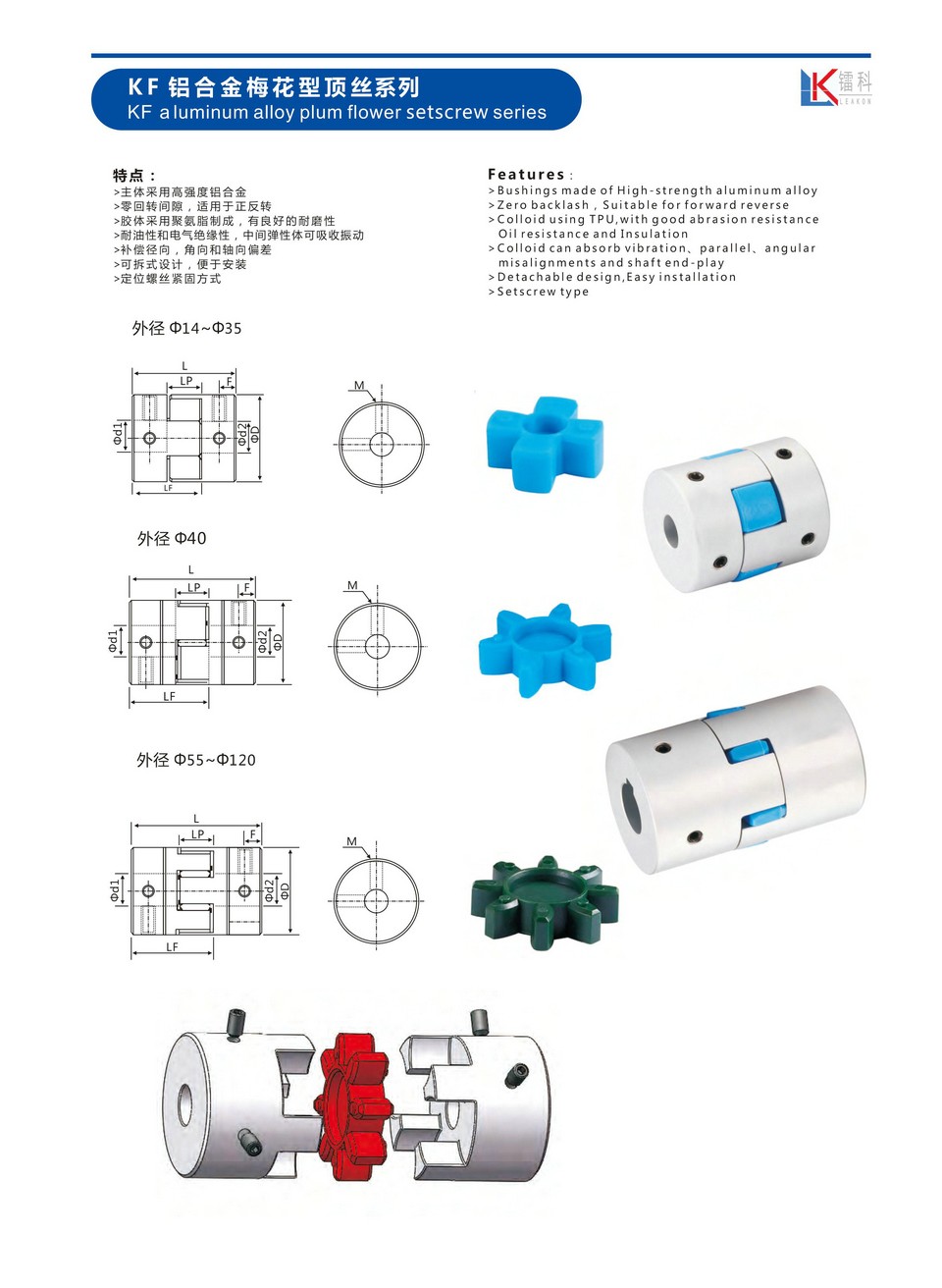 首页 >> 产品中心 >>梅花联轴器 >>铝合金梅花夹紧/顶丝系列 >> KF铝合金梅花型顶丝系列